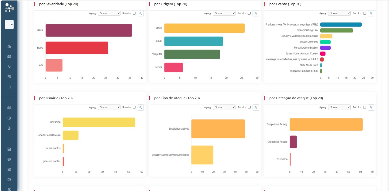 Todos esses dados são exibidos em dashboards visuais, organizados por severidade, impacto e prioridade, tornando a tomada de decisão mais ágil e baseada em evidências.