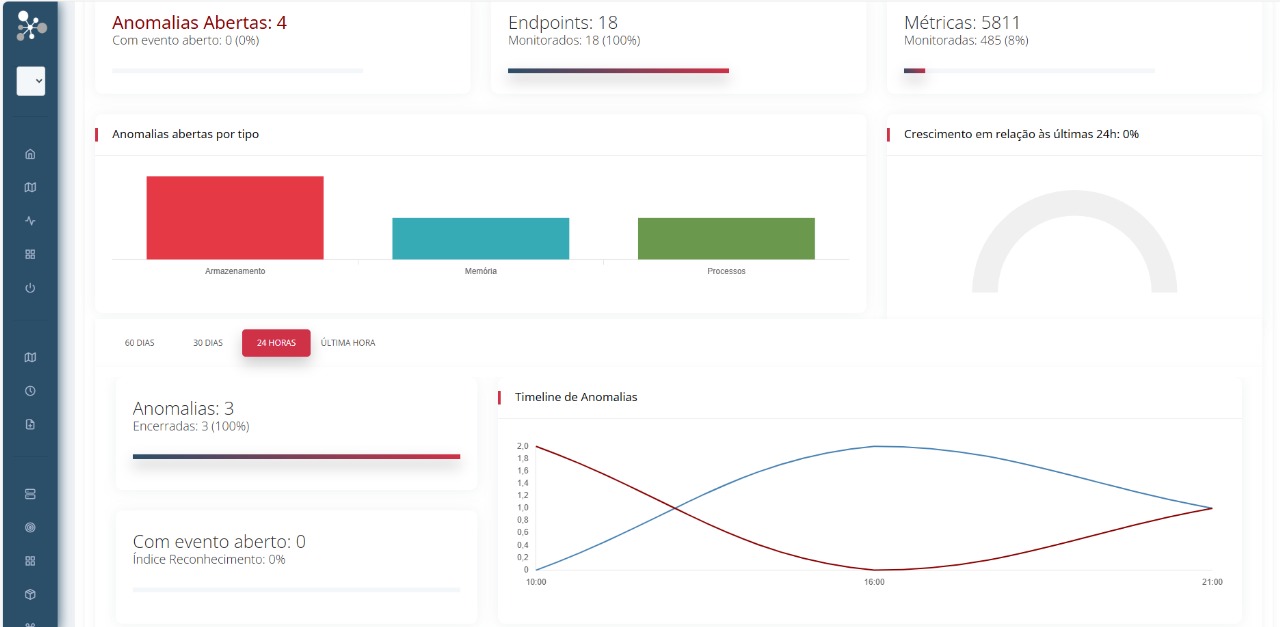 O Anomalus aprende o padrão de funcionamento da sua infraestrutura e sistemas, com base em dados reais do ambiente, e identifica mudanças sutis que indicam risco, mesmo antes de ocorrerem falhas. Isso permite uma visão preditiva — que alerta antes do problema, não apenas quando ele acontece.