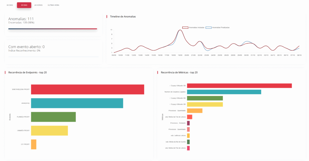 O objetivo é detectar incidentes ocultos, desvios operacionais silenciosos e comportamentos incomuns em qualquer métrica monitorada — antes que se tornem falhas críticas.