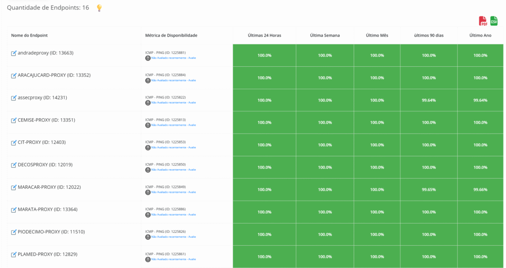 O painel apresenta uma lista completa dos Endpoints monitorados, com: