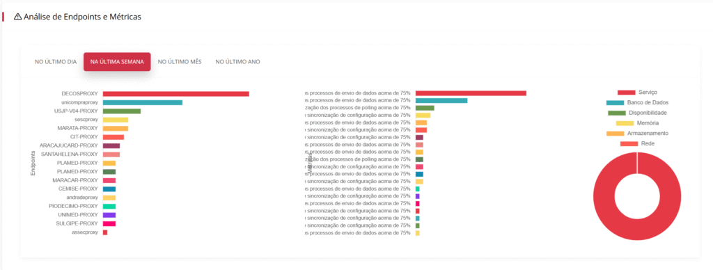 Um dos maiores diferenciais deste módulo é a associação dos alertas do Zabbix aos Endpoints afetados e às métricas envolvidas, agrupadas por: